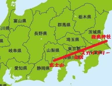 それもそのはずで、天孫降臨に重要な役割を担った神社で「すべての始まりの地」と呼ばれるほど名高い鹿島神宮と皇居・日本の象徴の山である富士山を結ぶレイラインのことです。