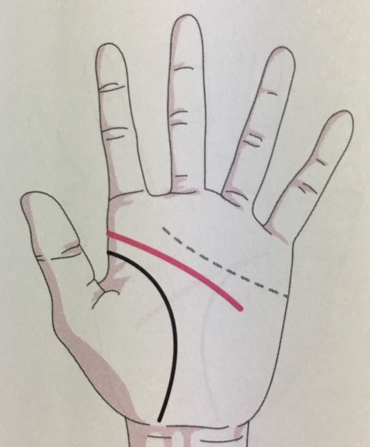 ・知能線が第二火星丘に向かう人 理系タイプです。実務処理能力が高く数字にも強く、経理・事務など正確さを必要とする仕事や分析や研究、統計をとる仕事などに向いています。