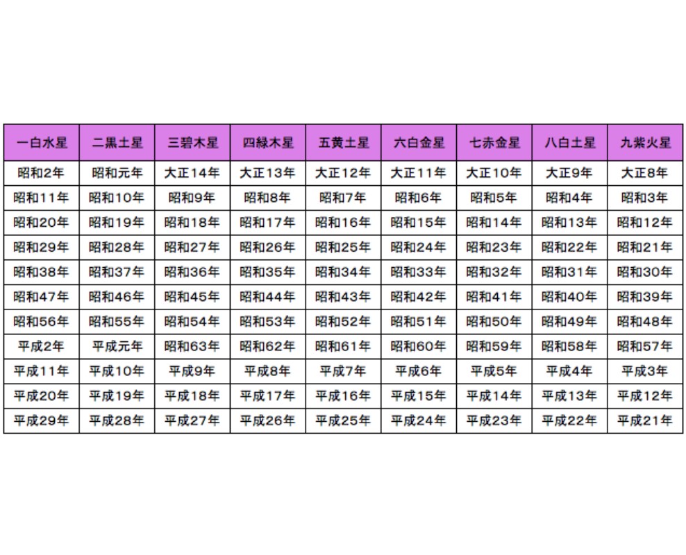旧暦の暦のため、2月3日までに生まれた方は、前年の星となります。