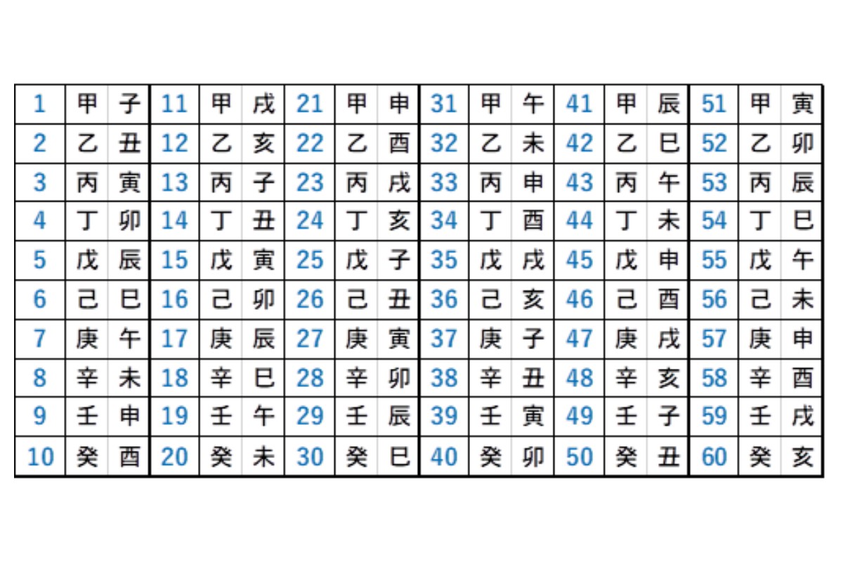 「干支」は、「十干」と「十二支」の組合せで、その「干支」は全部で60種類。