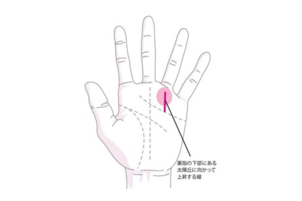 薬指の下部にある太陽丘に向かう線を太陽線と呼びます。