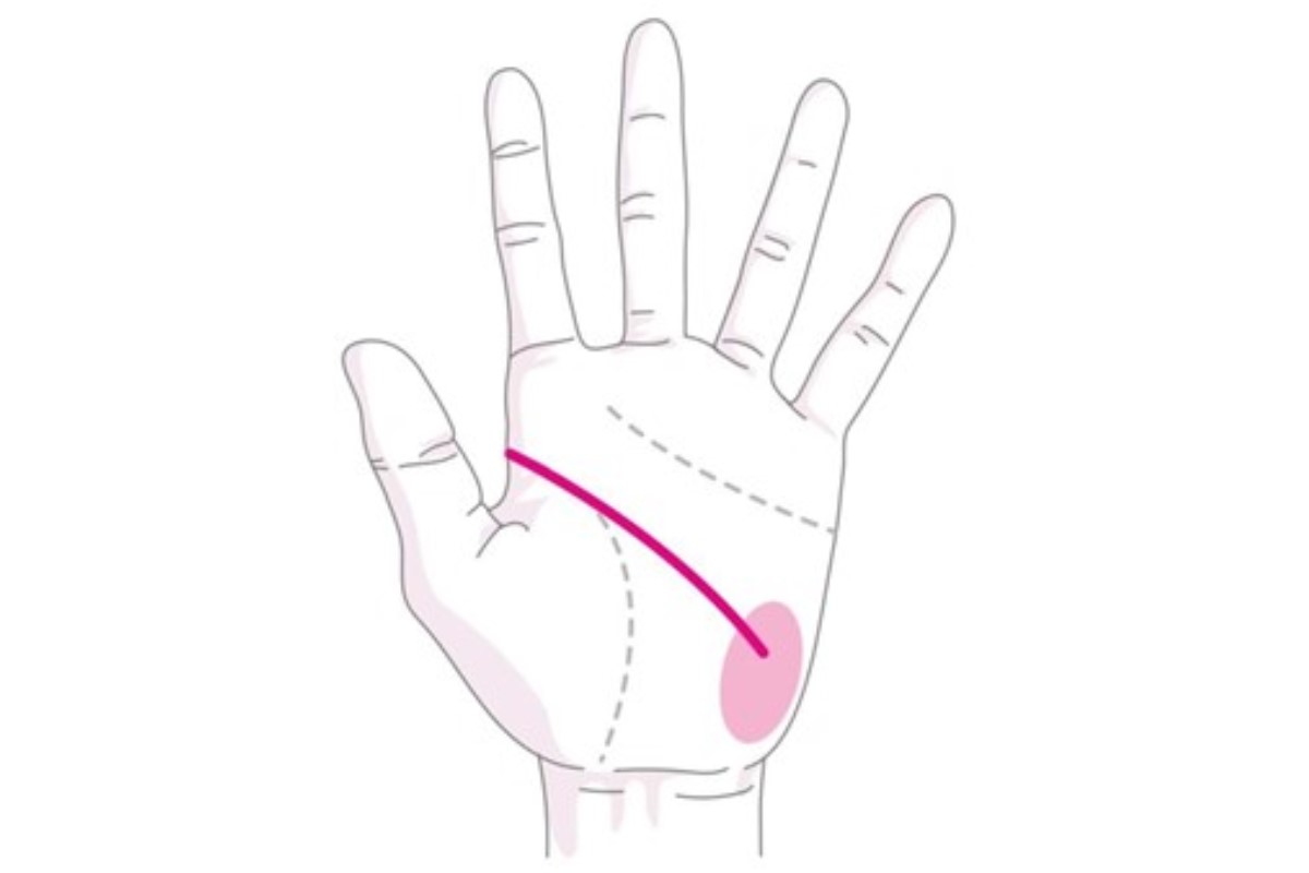 小指の下の月丘方向に向かう知能線を持つ人はロマンチストタイプです。
