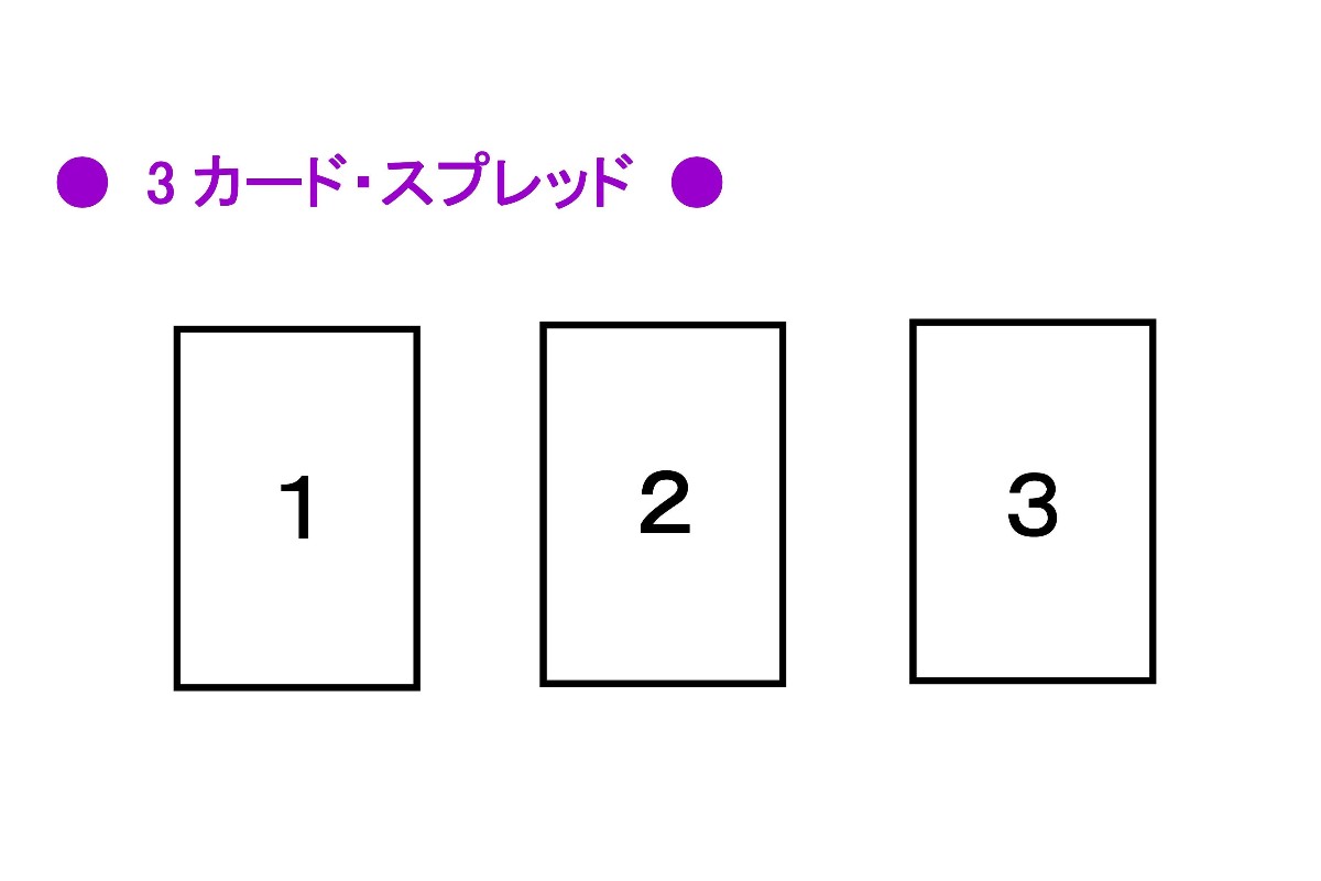シャッフル・カットを終えた後に1~3まで順にカードをレイアウトして、以下の要領でリーディングを行います。