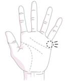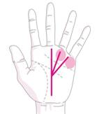 知能線に接して現れるフィッシュは知的分野で成功を収めることを示し、運命線に接して現れる場合は幸運な運勢の持ち主であることを示します。