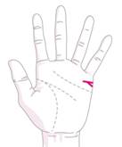 結婚線がない状態から、図のように結婚線が現れた時には、結婚のチャンス到来時期です。