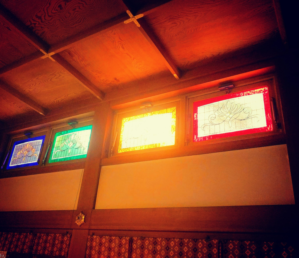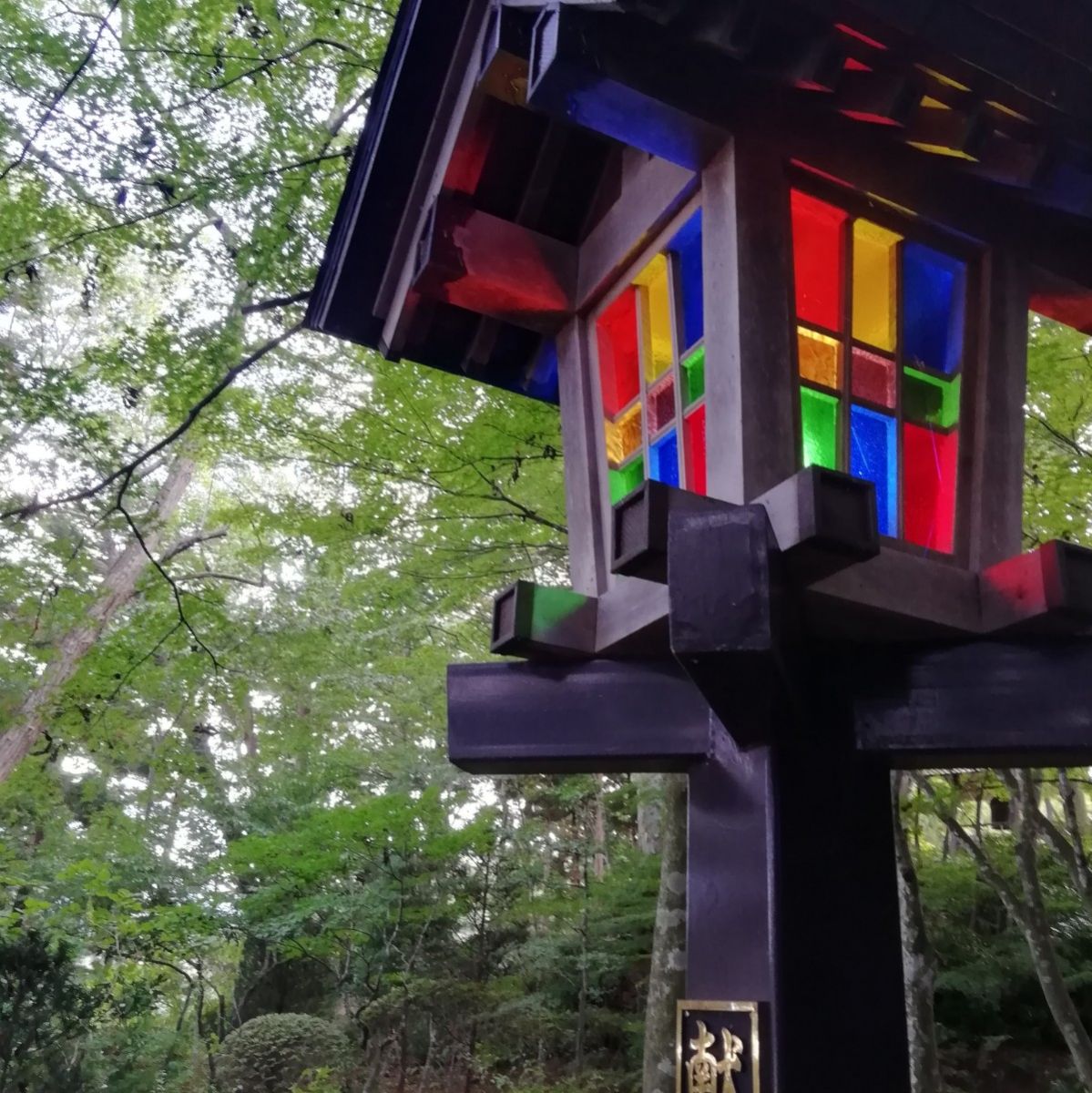 三戸大神宮の灯篭はステンドグラスを使っており、先日、社殿にもとても美しいステンドグラスが入りました。