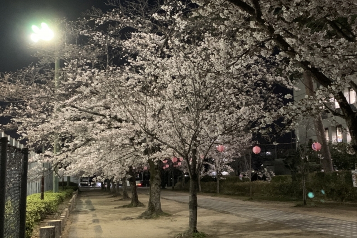 お花見で目にすることが多い、暖色の灯りに照らされた桜は、あたたかみのある色に染まっています。