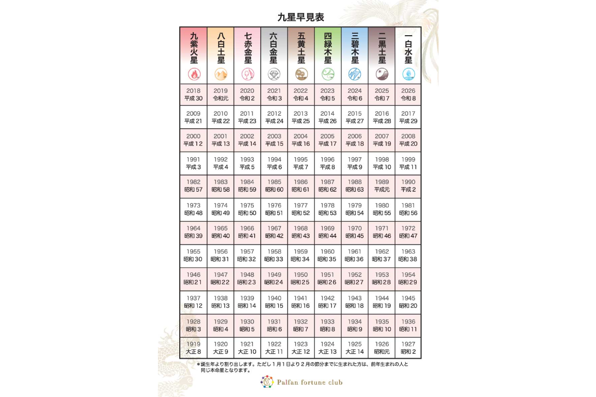 (※ただし1/1~2/3生まれの方は前年の本命星になります)