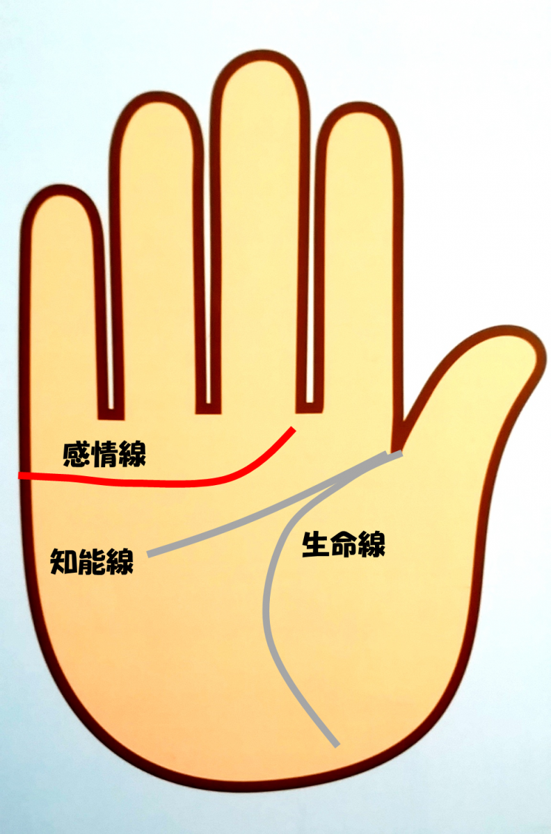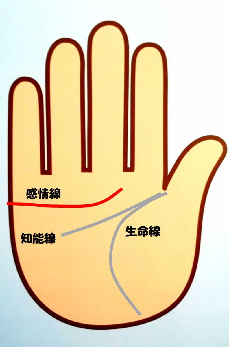 図のように 「感情線」「知能線」「生命線」が三大基本線と呼ばれるものです。