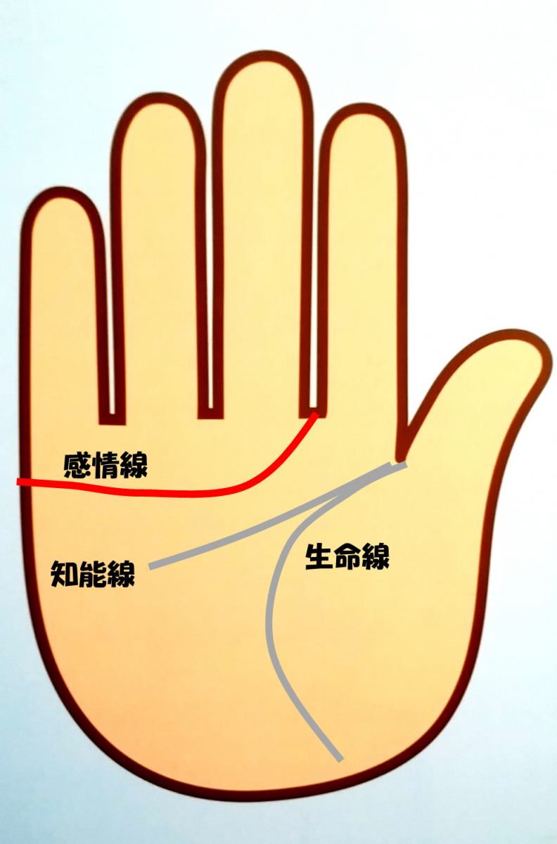 一番上の赤い線が「感情線」です。