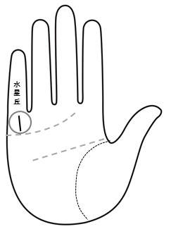 図1のように小指の根本(水星丘)の真ん中に線が一本だけあるひとは、一攫千金を狙うタイプではなく、コツコツ貯金型です。