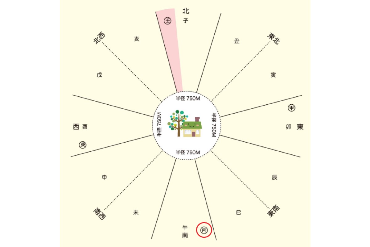 自宅の中心から恵方の方位(北北西)に、その年の恵方にいる九星にちなんだ物や絵などを壁に貼ったり、置いたりします。